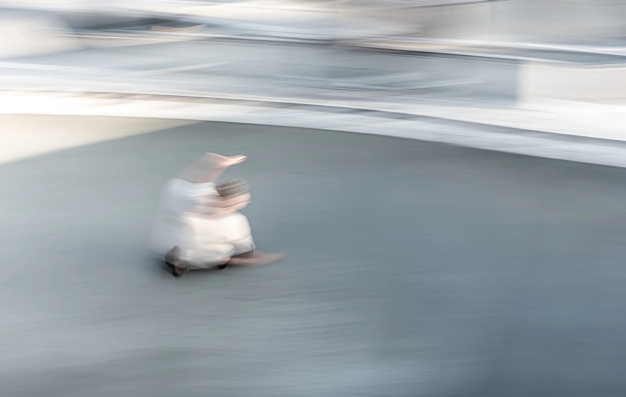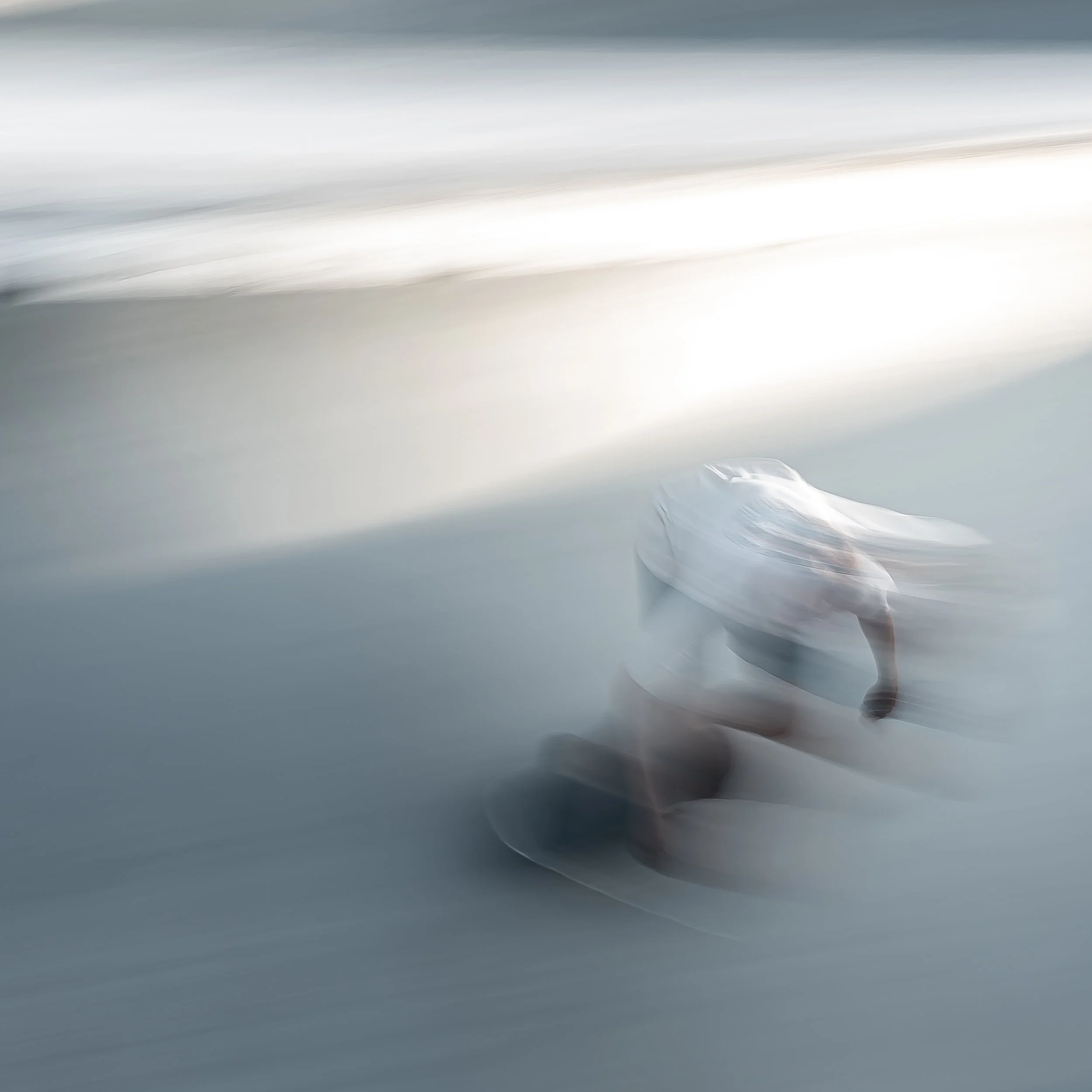 This fluid movement is what inspired this collection. Alfredo captures these skillful athletes in motion, gliding through one of Los Angeles' most iconic destinations under a setting sun. Some photographs lean toward abstraction, yet each one remains unmistakably Venice Beach.
